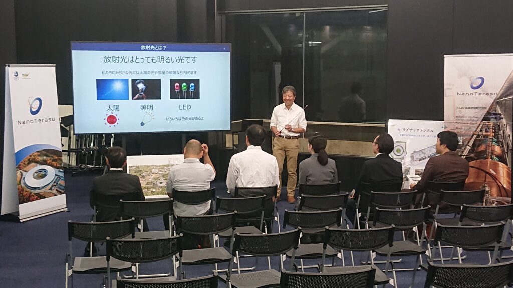 9月30日、NanoTerasu総括事務局加道広報グループリーダーがご案内し、特許庁審査第四部電子デバイスの皆様にNanoTerasuをご視察いただきました。