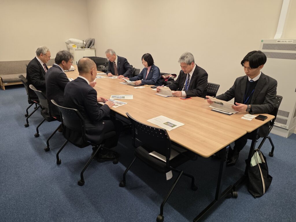 12月5日、兵庫県立大学の高坂学長ご一行がNanoTerasuを訪問され、NanoTerasuセンターの高橋センター長のご挨拶の後、総括事務局の川上局長と加道広報グループリーダーの案内でNanoTerasuを見学され、意見交換を行いました。