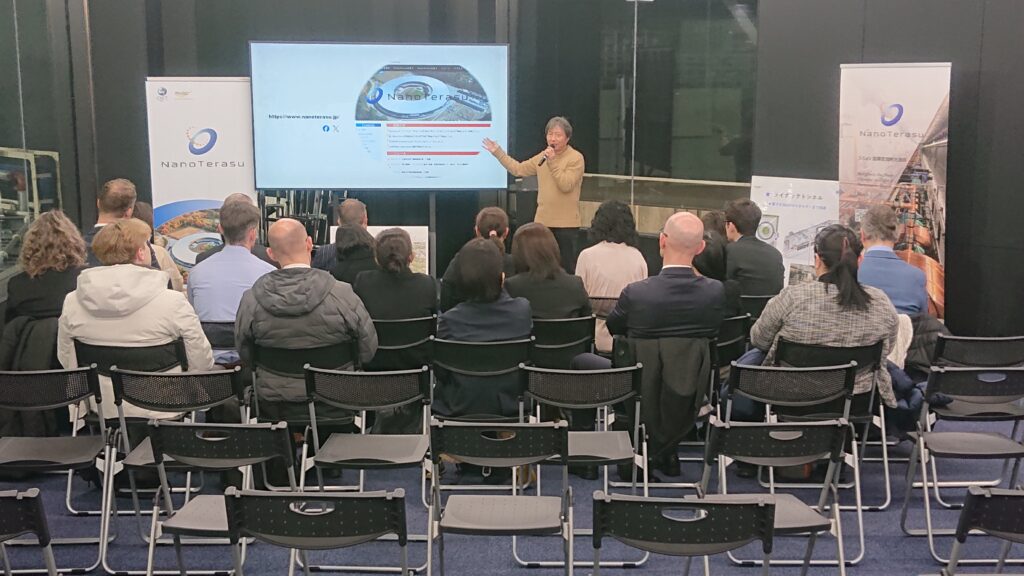 2月19日、NanoTerasu総括事務局加道広報グループリーダーがご案内し、在日スイス大使館東京科学技術オフィスの皆様にNanoTerasuをご視察いただきました。