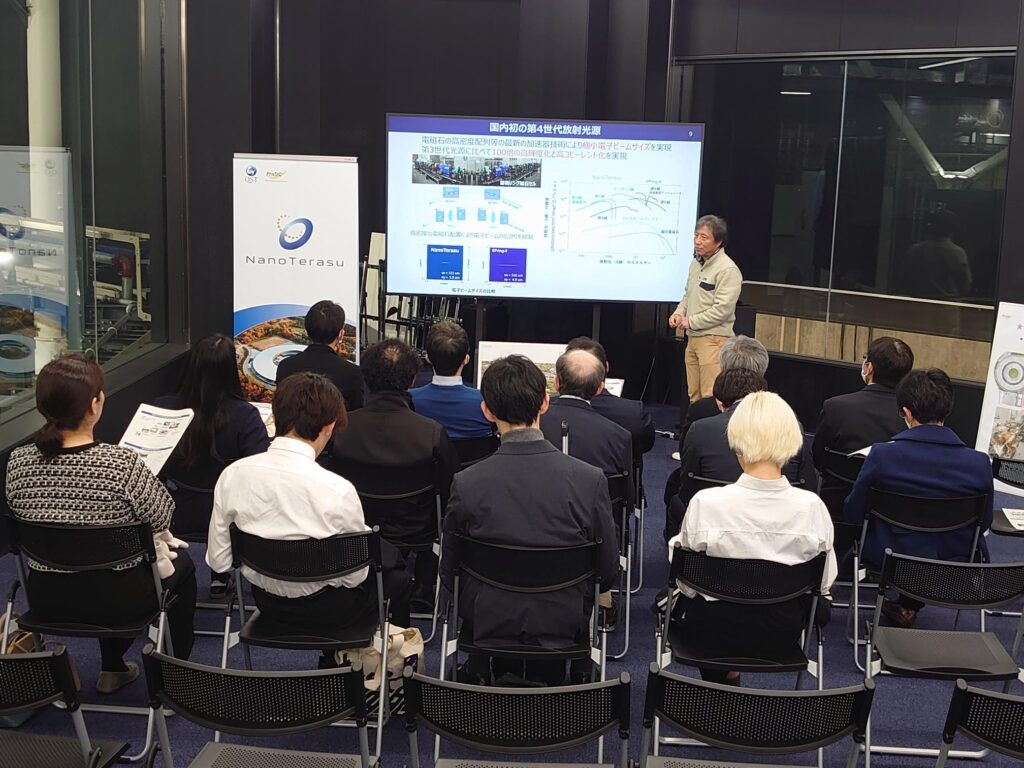 2月27日、NanoTerasu総括事務局加道広報グループリーダーがご案内し、日本分光学会近赤外部会の皆様にNanoTerasuをご視察いただきました。