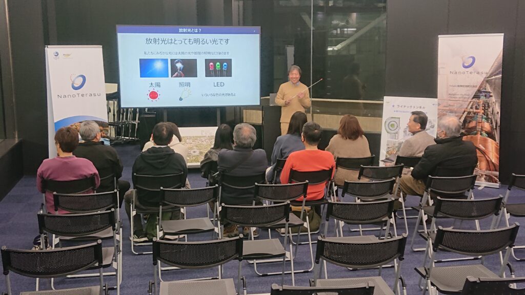 2月20日、NanoTerasu総括事務局加道広報グループリーダーがご案内し、美田園七丁目町内会の皆様にNanoTerasuをご視察いただきました。