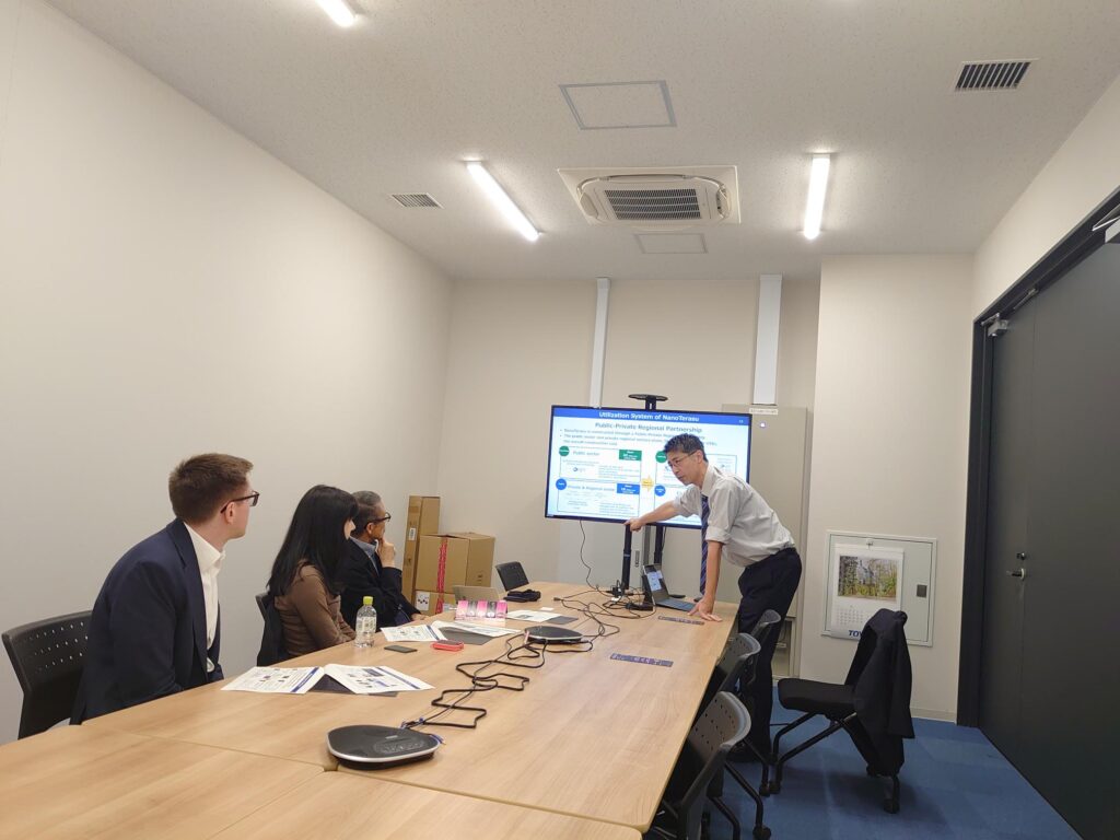 4月20日、NanoTerasu総括事務局広報グループ冨松参事がご案内し、在大阪スイス領事館関係者の皆様にNanoTerasuをご視察いただきました。