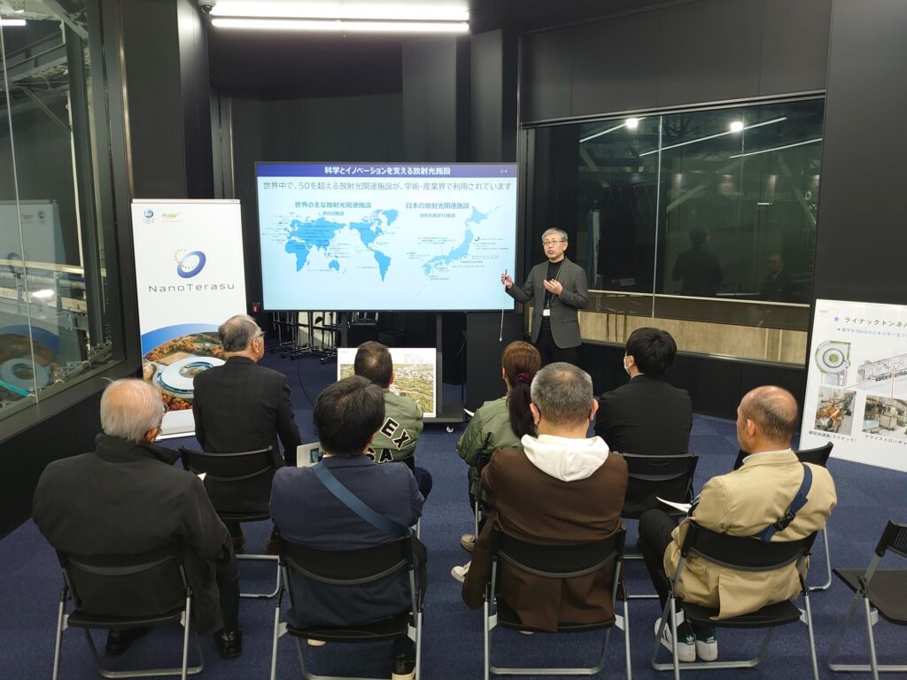 10月31日、NanoTerasu総括事務局広報グループ髙橋参事がご案内し、東北MUCC製品技術会の皆様にNanoTerasuをご視察いただきました。