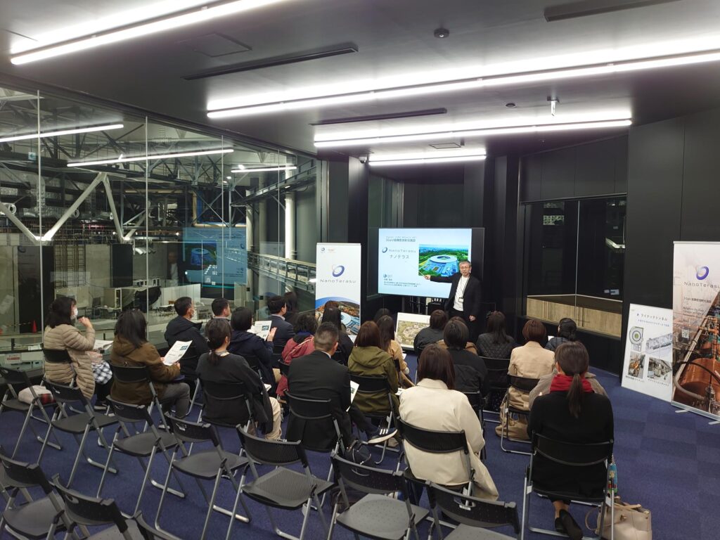 11月10日、NanoTerasu総括事務局加道広報グループリーダーがご案内し、シティラボ入居企業の皆様にNanoTerasuをご視察いただきました。