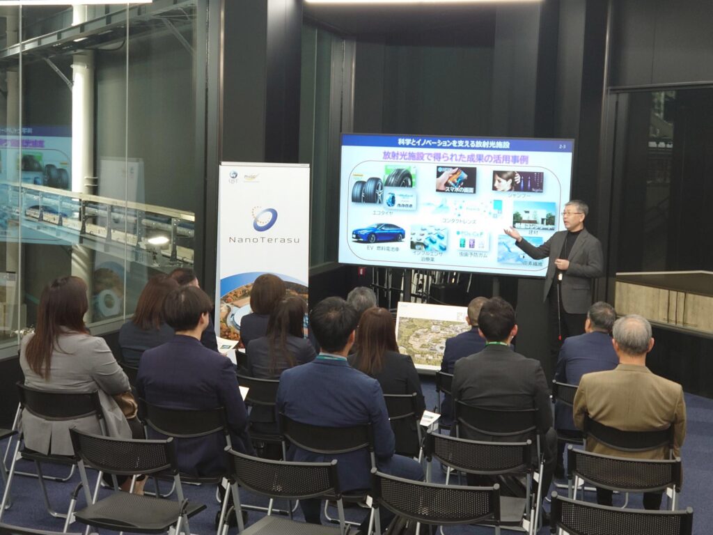 2025-11-10 CATEGORY: PickUp 視察・見学11月10日、NanoTerasu総括事務局加道広報グループリーダーがご案内し、シティラボ入居企業の皆様にNanoTerasuをご視察いただきました。
