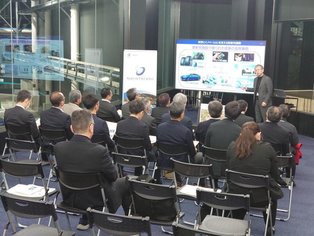 2026-01-06 CATEGORY: PickUp 視察・見学1月6日、NanoTerasu総括事務局広報グループ髙橋参事がご案内し、東北発電工業労働組合の皆様にNanoTerasuをご視察いただきました。