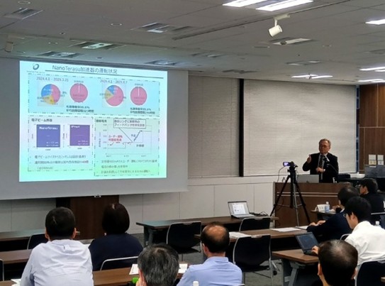 10月8日より研究課題募集が開始されるNanoTerasu 2026A期共用利用に関して、該当期からはコアリションビームラインの共用利用が開始され、それに先立ちコアリションビームラインの性能や成果を中心に紹介がされました。 Webも含め300人程度の参加者があり、本利用への期待の高さがうかがえました。