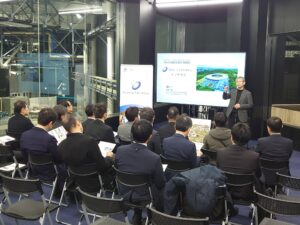On December 19, Mr. Takahashi, Manager of the Promotion and Public Relation Group at the NanoTerasu Secretariat, guided visitors from  Japan Embedded Systems Technology Association Tohoku Branch on a tour of NanoTerasu.