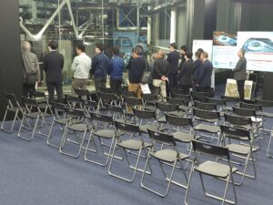 Following an overview presentation on NanoTerasu and an introduction to the coalition framework, the delegation toured the experimental hall. During the tour, they observed NanoTerasu’s advanced beamlines and prototype electromagnets.