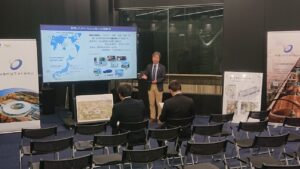 Following opening remarks by Director Kawakami in the exhibition hall, Dr. Kado provided an overview of NanoTerasu’s structure and its advanced technologies. The visitors then toured the experimental hall.