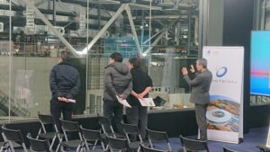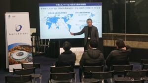 On January 22, Mr. Takahashi, Manager of the Promotion and Public Relation Group at the NanoTerasu Secretariat, guided visitors from NTT University Leaders Workshop D group on a tour of NanoTerasu.